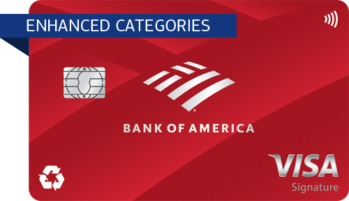 14 Bank of America® Customized Cash Rewards Program Information. How You Earn Cash Rewards: Earn cash rewards when you use this card to make purchases; returns, credits, and adjustments to this card will be deducted from purchases, even if this card was not the original payment method (“Net Purchases”). The following transactions are not considered purchases and will not earn cash rewards: Balance Transfers and Cash Advances (each as defined in your Credit Card Agreement), fees, interest charges, fraudulent transactions and certain other charges. 1% Base Cash Rewards: Earn 1% cash back (equal to $0.01 for every $1) on Net Purchases charged to the card each billing cycle. 2% Bonus Category: Earn a total of 2% cash back (equal to $0.02 for every $1, consisting of 1% bonus cash rewards and 1% base cash rewards) on Net Purchases made at eligible grocery stores and wholesale clubs, supermarkets, meat and seafood stores, candy, nut or confection stores, dairy stores, and bakeries. Excluded from this Bonus Category are superstores and smaller stores (like drug stores) that sell groceries and other products. 3% Bonus Category: Earn a total of 3% cash back (equal to $0.03 for every $1, consisting of 2% bonus cash rewards and 1% base cash rewards) on Net Purchases made at eligible merchants in the one Choice Category you have selected. Eligible merchants include those whose primary line of business falls under the following Choice Categories: Gas & Electric Vehicle (EV) Charging Stations (default), Online Shopping, Dining, Travel, Drug Stores, or Home Improvement/Furnishings. When the new account is opened the default Choice Category is Gas & EV Charging Stations. If you receive Instant Access to your card information, you will be able to use your temporary card information immediately, however, you may not be able to change your Choice Category immediately. To change your Choice Category for future purchases, you must go to Online Banking or use the Mobile Banking app. A new Choice Category selection can be made once per calendar month. If no change is made the category will remain the same. Additional information can be found at bankofamerica.com/choosemycategory. Bonus Category Cap: Eligible Net Purchases made in both the 2% and 3% Bonus Categories earn bonus cash rewards on the first $2,500 of combined Net Purchases posted to the account each calendar quarter. Once the $2,500 quarterly limit is reached, additional Net Purchases will earn the 1% base cash rewards until the first day of the next calendar quarter. 3% Bonus Category Qualifications: When Online shopping is your Choice Category, purchases must be made online via a website or a digital application (an app). To identify if the purchase was made online, we rely on information provided to us by the merchant. You will not be eligible to receive 3% cash back for purchases made by phone or mail, nor for purchases made in-person, including those ordered online but paid for in-store. Purchases made in-store using a mobile or digital wallet or a contactless payment device are not online purchases. Some non-retail services aren’t eligible for the 3% Online Shopping bonus; examples include doctors and hospitals, government services and taxes, insurances, membership organizations, education/schools, and some utilities. Identifying Bonus Categories: Merchants who accept Visa/Mastercard are assigned a merchant category code (MCC) based on the type of products or services they primarily sell. Merchants, not Bank of America, categorize and submit purchases, so some purchases may not fall into the category where you might expect them to appear. When this occurs, purchases with that merchant won't qualify for bonus cash rewards. Purchases made at a merchant that does not process under an eligible MCC or processes through a third-party payment account, digital wallet not supported by Bank of America or similar technology where the technology does not support transmission of MCCs will not qualify for bonus cash rewards. Purchases made using a third party “buy now pay later” installment program may not qualify for bonus cash rewards. Rewards Redemption: Redeem cash rewards for statement credits, deposits made directly into a Bank of America® checking or savings account, for credit to a qualifying Cash Management Account® with Merrill or qualifying 529 account with Merrill, checks, or to pay for eligible purchases when you shop at Amazon.com or check out with PayPal. Cash rewards shall be issued for a U.S. dollar sum and may be requested on demand. Certain cash rewards are eligible for automatic redemption. Redemptions for an electronic deposit into a Bank of America checking or savings account, or credit to a qualifying Cash Management Account® with Merrill, or for a statement credit do not have a minimum redemption amount. One-time redemptions for a contribution to a qualifying 529 account with Merrill, redemptions for a check or automatic redemptions for an electronic deposit into a Bank of America checking or savings account, or credit into a qualifying Cash Management Account® with Merrill have a $25 minimum redemption amount. Pay with Rewards: Amazon and all related Marks are Trademarks of Amazon.com, Inc. or its affiliates. PayPal and the PayPal logo are registered trademarks of PayPal, Inc. Use Rewards with PayPal: Pay with Rewards will be available for eligible credit cards on eligible purchases or can be donated to support a charitable cause with PayPal Giving Fund. To learn more about PayPal Pay with Rewards, see terms and conditions at www.paypal.com/us/pay-with-rewards-terms. All reward redemptions are subject to the rewards program rules from Bank of America. How You May Lose Rewards: As long as your card account remains open with active charging privileges, cash rewards do not expire. However, if the owner(s) of the card account voluntarily closes the card account or we close the card account for inactivity, you must redeem t